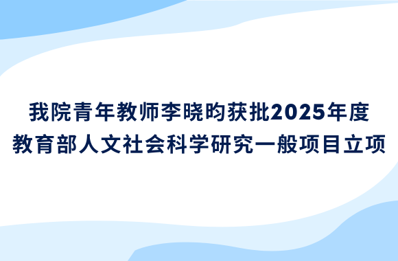我院青年教师李晓昀获批2025年度教育部人文社会科学研究一般项目立项