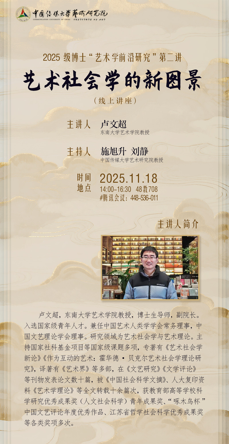 讲座预告 | 2025 级博士“艺术学前沿研究”第二讲