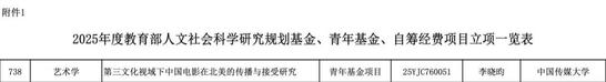 近日,教育部社科司公布2025年度教育部人文社会科学研究一般项目立项结果,我院青年教师李晓昀申报的青年项目《第三文化视域下中国电影在北美的传播与接受研究》喜获立项。
