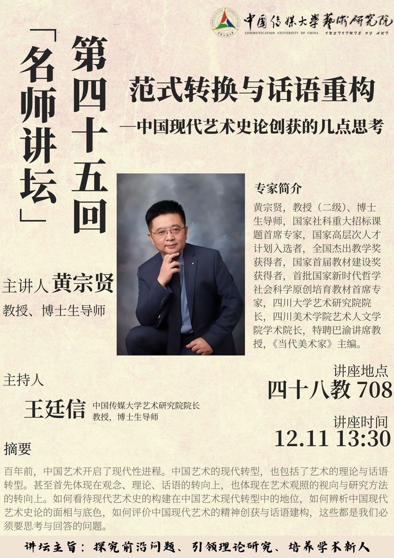 讲座预告丨中国传媒大学艺术理论新视野“名师讲坛”第四十五回