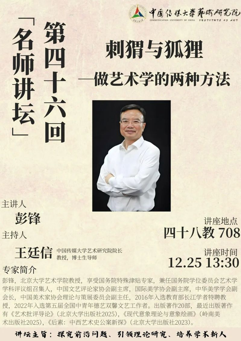 讲座预告丨中国传媒大学艺术理论新视野“名师讲坛”第四十六回