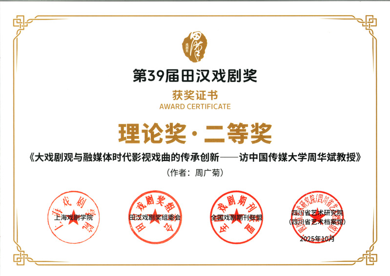 我院周广菊副教授荣获第39届田汉戏剧奖理论奖二等奖